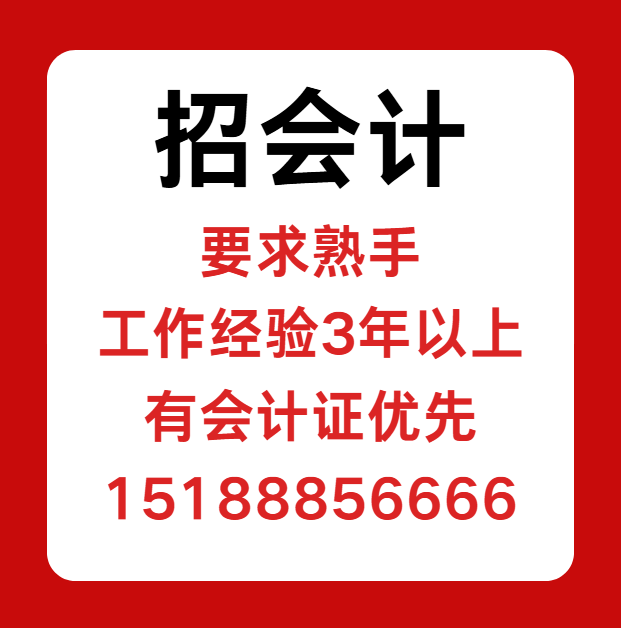 招聘会计,要求熟手工作经验3年以上,有会计证优先