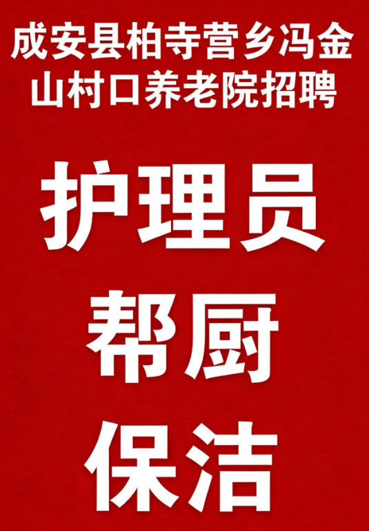 成安县柏寺营乡冯金山村口养老院招聘,护理员, 有意者联系