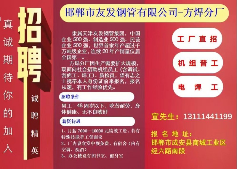 招聘普工,操作工,若干名,满一个月后交纳五险一金,地址:河北省邯郸市成安县经六街