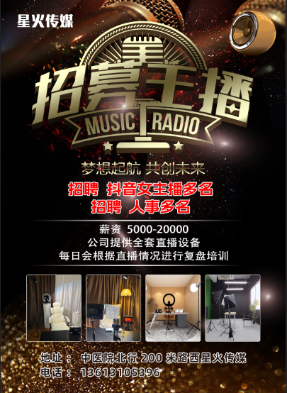 星火传媒招聘 九宫格女主播、人事数名 薪资:保底3000➕提成 地址:成安县城 上班时间:朝九晚五